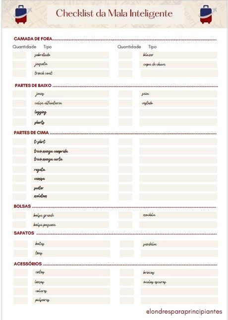 • Checklists de tudo o que você precisa levar na viagem