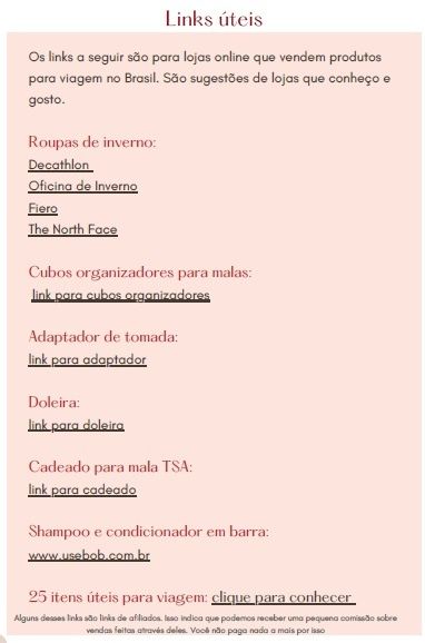 Amei as dicas. Muito obrigada querida...Pela primeira vez na VIDA viajei com menos de 20 kg e não senti falta de nada.